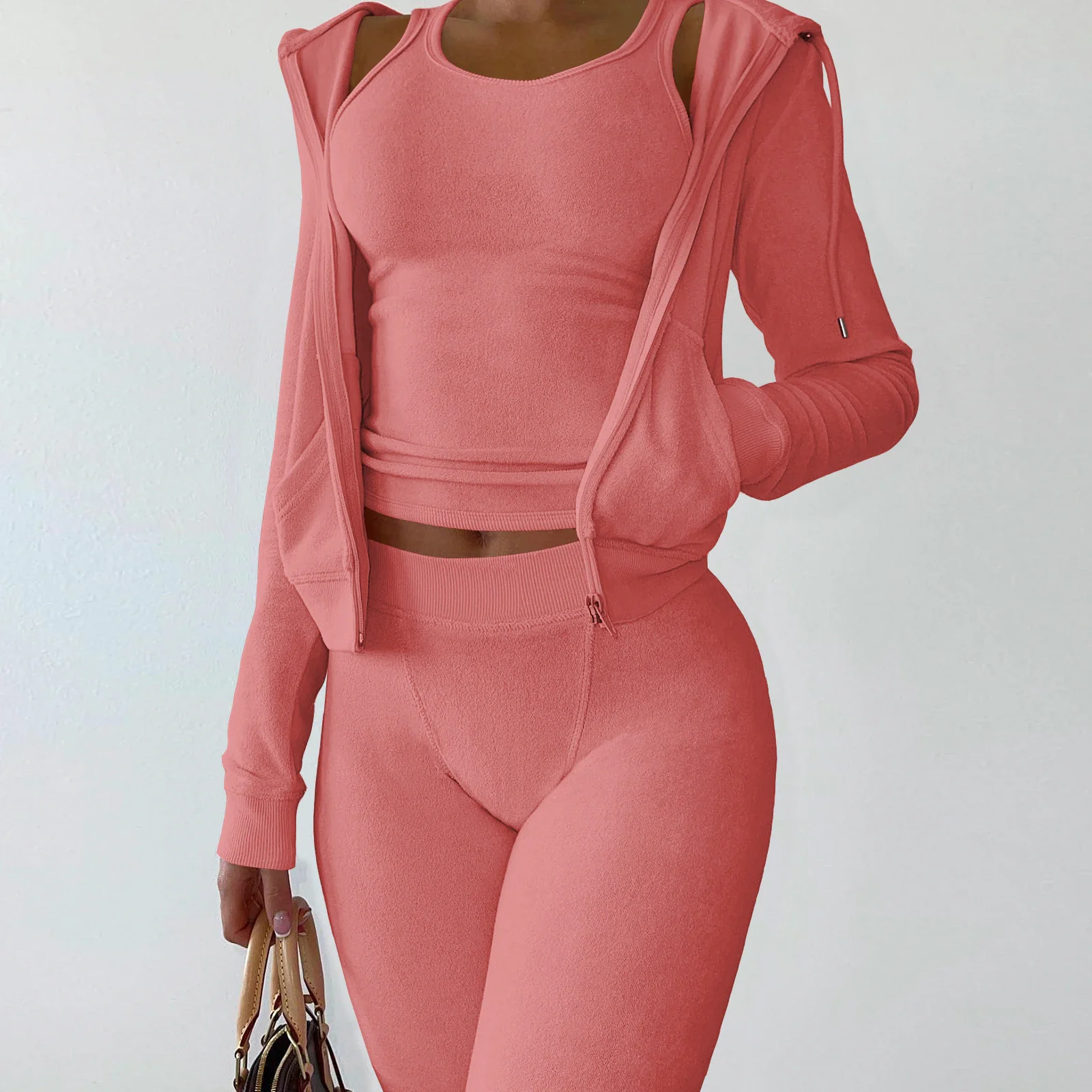 Elegant 2 Pieces Sets Women Luxury Outfit Sweatsuit Velour Zip Up Hoodie Jackets